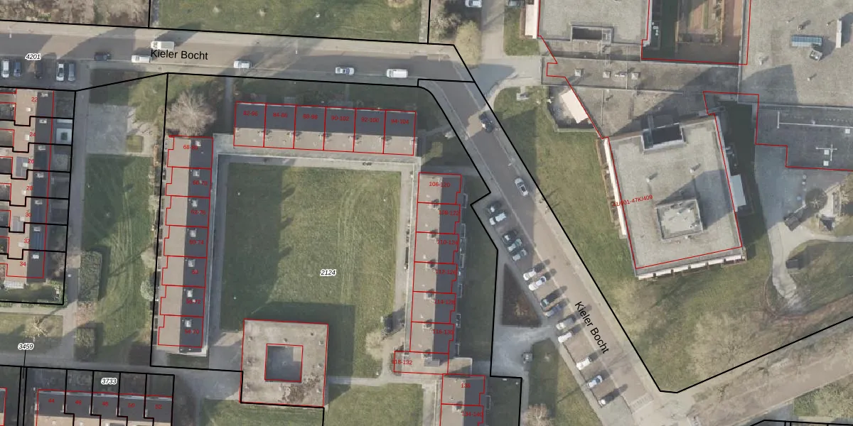Kieler Bocht 108 is gelegen op kadastraal perceel VDM00C2124. Deze kadastrale aanduiding is uniek en wordt gebruikt door het Kadaster om eigendomsrechten en andere zakelijke rechten vast te leggen. Het perceel maakt onderdeel uit van de kadastrale gemeente Veendam.