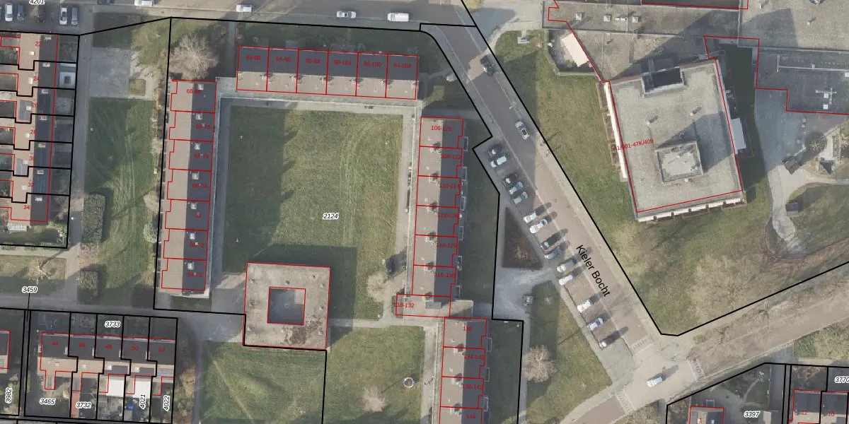 Het perceel waarop Kieler Bocht 124 staat heeft een oppervlakte van 7870 m². Dit is een zeer groot perceel. De perceeloppervlakte wordt geregistreerd door het Kadaster. Gedetailleerde informatie over de maten van dit perceel kunt u vinden in het rapport Kadastrale kaart met maatvoering van Kieler Bocht 124.