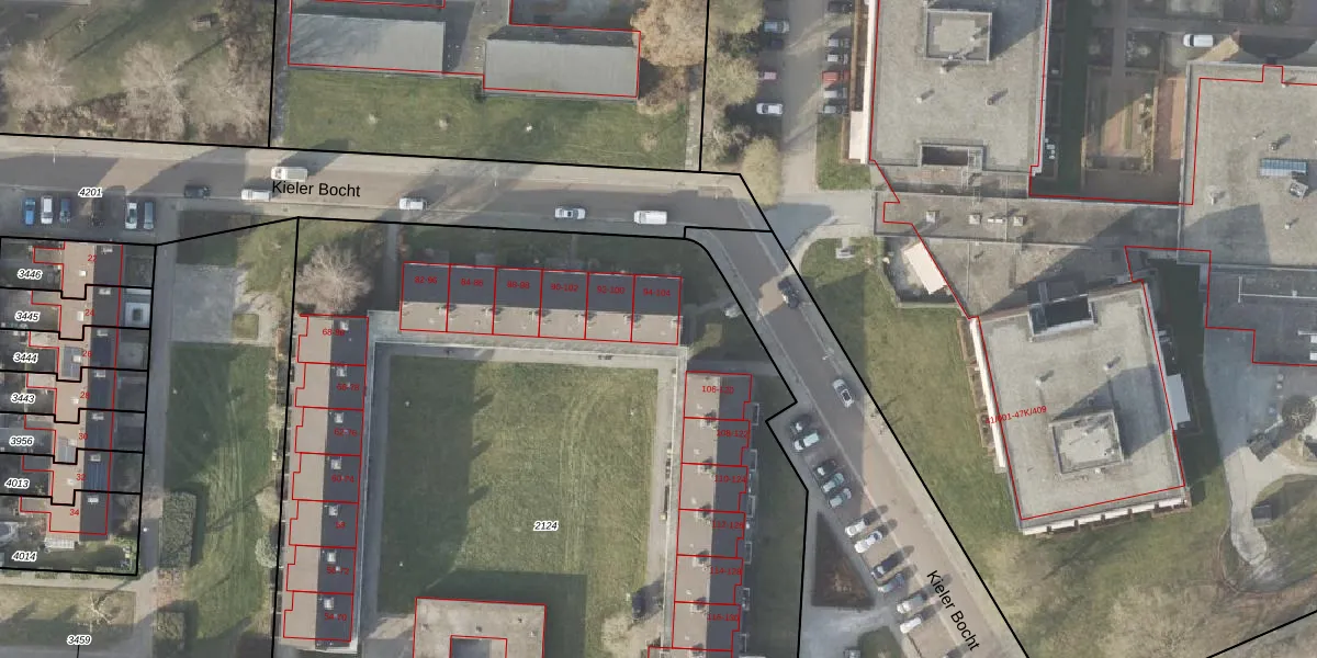 Kieler Bocht 92 is gelegen op kadastraal perceel VDM00C2124. Deze kadastrale aanduiding is uniek en wordt gebruikt door het Kadaster om eigendomsrechten en andere zakelijke rechten vast te leggen. Het perceel maakt onderdeel uit van de kadastrale gemeente Veendam.