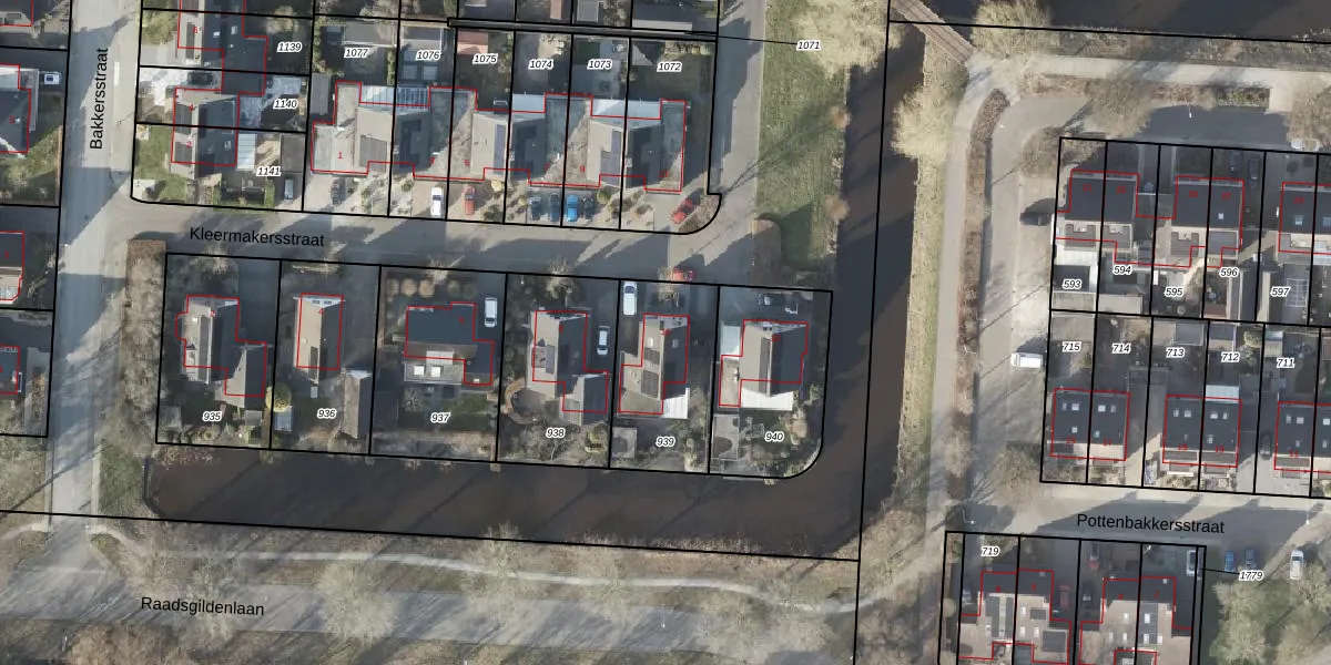 Het perceel waarop Kleermakersstraat 10 staat heeft een oppervlakte van 427 m². Dit is een groot perceel. De perceeloppervlakte wordt geregistreerd door het Kadaster. Gedetailleerde informatie over de maten van dit perceel kunt u vinden in het rapport Kadastrale kaart met maatvoering van Kleermakersstraat 10.