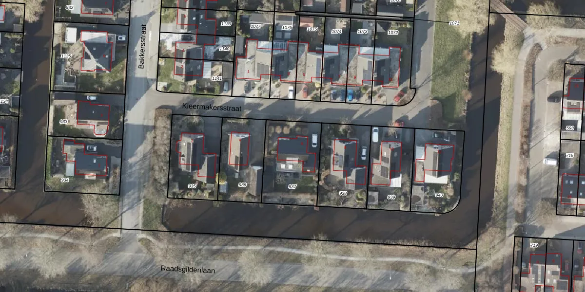 Gebruik de zoekbalk of klik op een perceel voor informatie over de adressen binnen dit perceel.
