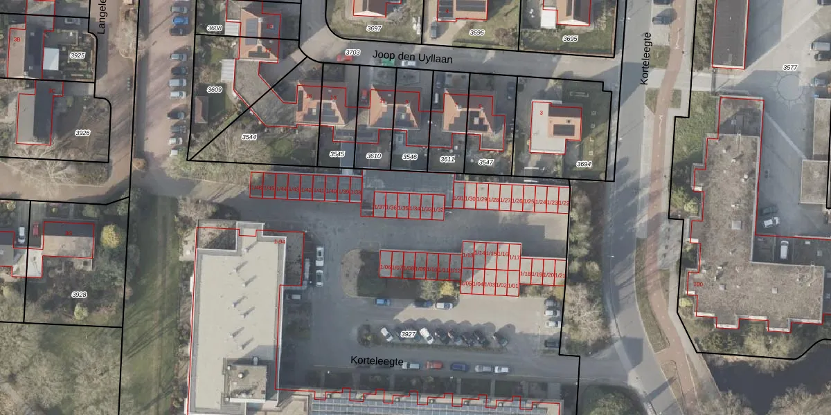 Het perceel waarop Korteleegte 1-34 staat heeft een oppervlakte van 1,0 ha. Dit is een zeer groot perceel. De perceeloppervlakte wordt geregistreerd door het Kadaster. Gedetailleerde informatie over de maten van dit perceel kunt u vinden in het rapport Kadastrale kaart met maatvoering van Korteleegte 1-34.