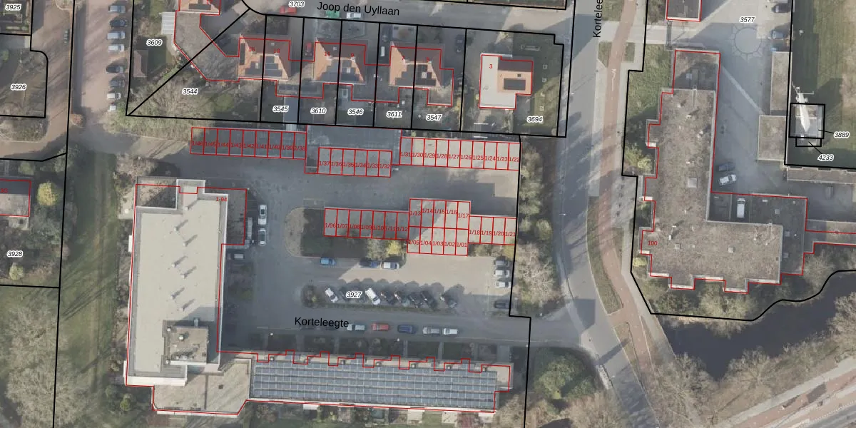 Het perceel waarop Korteleegte 1-14 staat heeft een oppervlakte van 1,0 ha. Dit is een zeer groot perceel. De perceeloppervlakte wordt geregistreerd door het Kadaster. Gedetailleerde informatie over de maten van dit perceel kunt u vinden in het rapport Kadastrale kaart met maatvoering van Korteleegte 1-14.