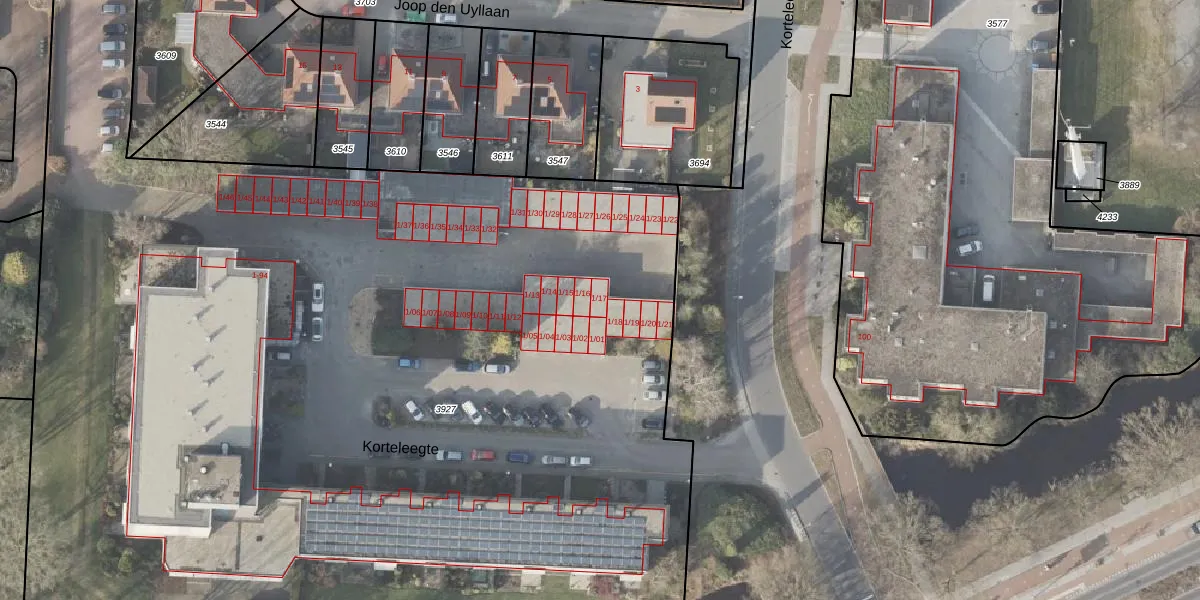 Het perceel waarop Korteleegte 1-17 staat heeft een oppervlakte van 1,0 ha. Dit is een zeer groot perceel. De perceeloppervlakte wordt geregistreerd door het Kadaster. Gedetailleerde informatie over de maten van dit perceel kunt u vinden in het rapport Kadastrale kaart met maatvoering van Korteleegte 1-17.