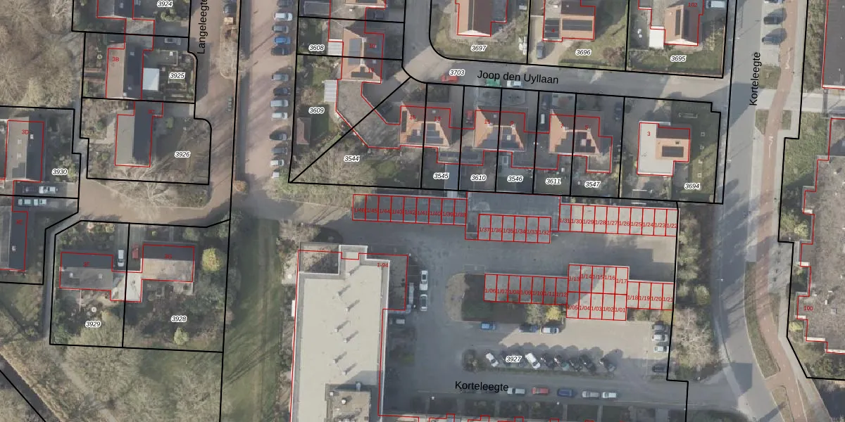 Het perceel waarop Korteleegte 1-41 staat heeft een oppervlakte van 1,0 ha. Dit is een zeer groot perceel. De perceeloppervlakte wordt geregistreerd door het Kadaster. Gedetailleerde informatie over de maten van dit perceel kunt u vinden in het rapport Kadastrale kaart met maatvoering van Korteleegte 1-41.