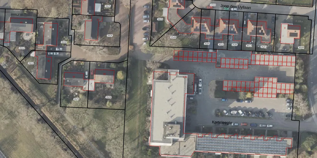 Het perceel waarop Korteleegte 26 staat heeft een oppervlakte van 1,0 ha. Dit is een zeer groot perceel. De perceeloppervlakte wordt geregistreerd door het Kadaster. Gedetailleerde informatie over de maten van dit perceel kunt u vinden in het rapport Kadastrale kaart met maatvoering van Korteleegte 26.