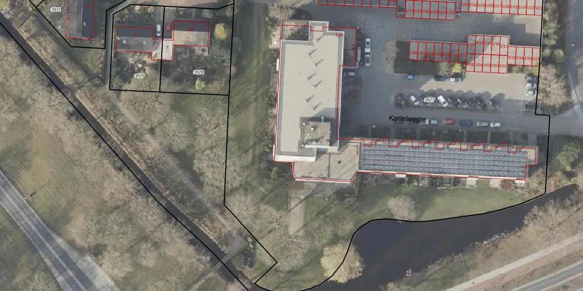 Het perceel waarop Korteleegte 38 staat heeft een oppervlakte van 1,0 ha. Dit is een zeer groot perceel. De perceeloppervlakte wordt geregistreerd door het Kadaster. Gedetailleerde informatie over de maten van dit perceel kunt u vinden in het rapport Kadastrale kaart met maatvoering van Korteleegte 38.