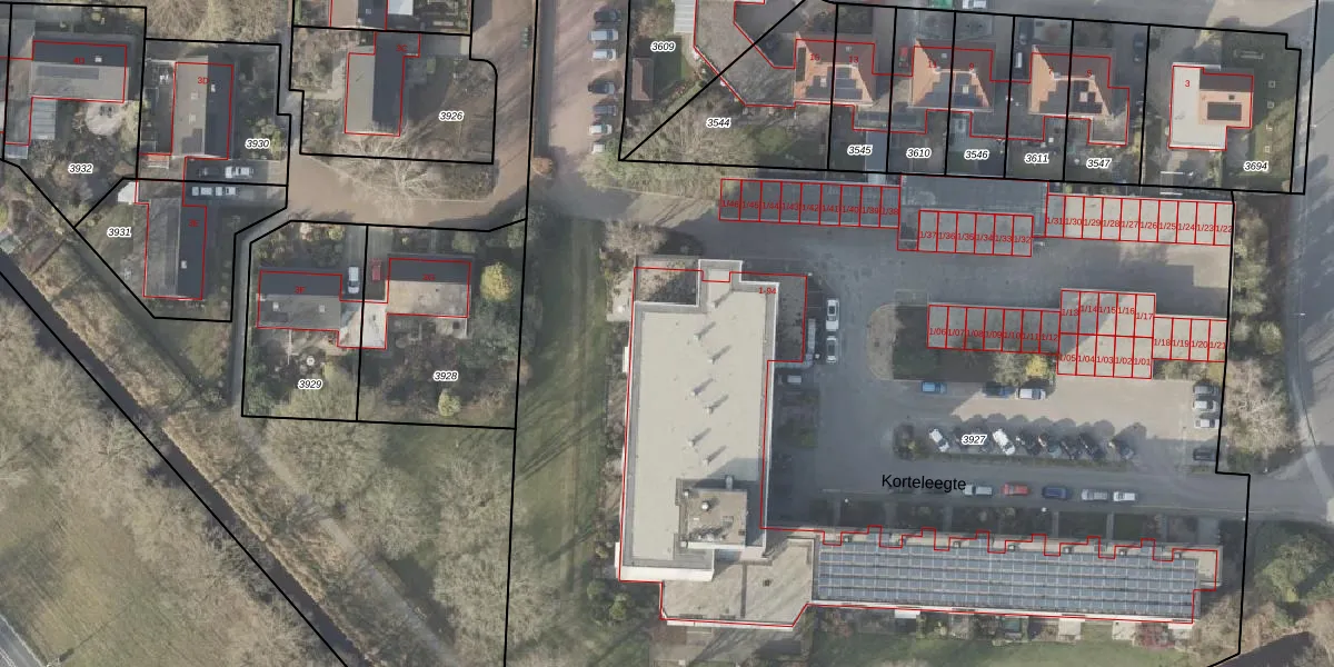 Het perceel waarop Korteleegte 42 staat heeft een oppervlakte van 1,0 ha. Dit is een zeer groot perceel. De perceeloppervlakte wordt geregistreerd door het Kadaster. Gedetailleerde informatie over de maten van dit perceel kunt u vinden in het rapport Kadastrale kaart met maatvoering van Korteleegte 42.