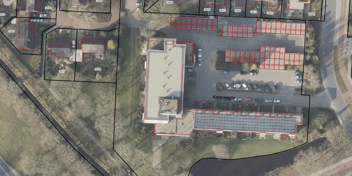 Het perceel waarop Korteleegte 46 staat heeft een oppervlakte van 1,0 ha. Dit is een zeer groot perceel. De perceeloppervlakte wordt geregistreerd door het Kadaster. Gedetailleerde informatie over de maten van dit perceel kunt u vinden in het rapport Kadastrale kaart met maatvoering van Korteleegte 46.