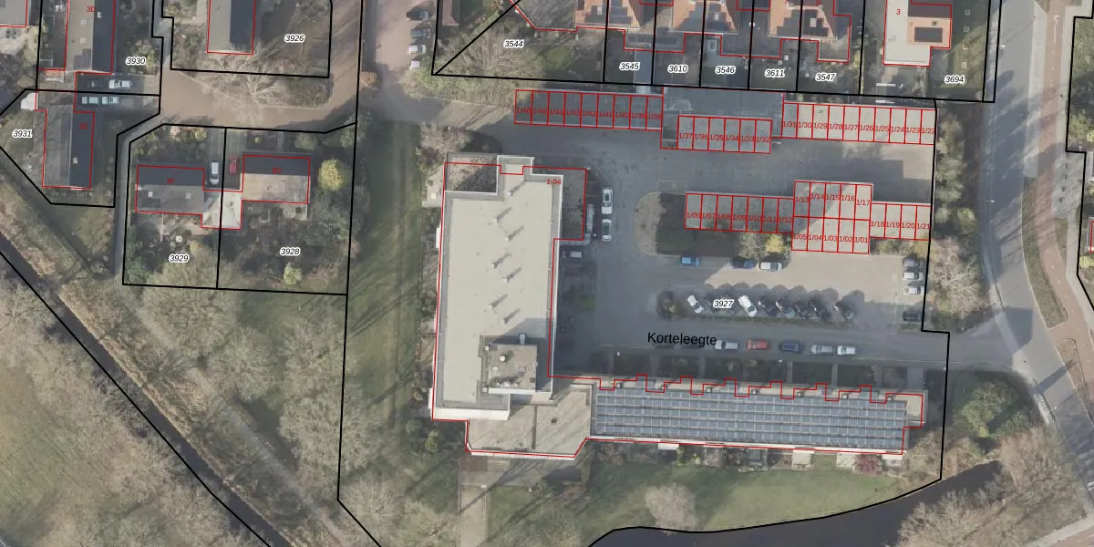 Het perceel waarop Korteleegte 83 staat heeft een oppervlakte van 1,0 ha. Dit is een zeer groot perceel. De perceeloppervlakte wordt geregistreerd door het Kadaster. Gedetailleerde informatie over de maten van dit perceel kunt u vinden in het rapport Kadastrale kaart met maatvoering van Korteleegte 83.