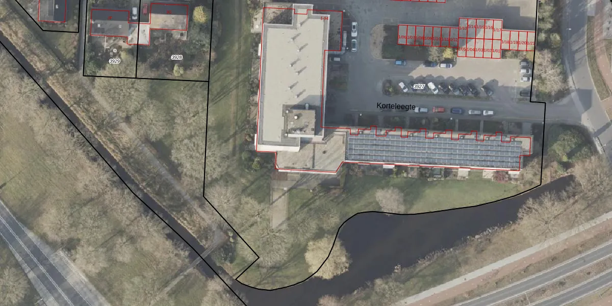 Het perceel waarop Korteleegte 94 staat heeft een oppervlakte van 1,0 ha. Dit is een zeer groot perceel. De perceeloppervlakte wordt geregistreerd door het Kadaster. Gedetailleerde informatie over de maten van dit perceel kunt u vinden in het rapport Kadastrale kaart met maatvoering van Korteleegte 94.
