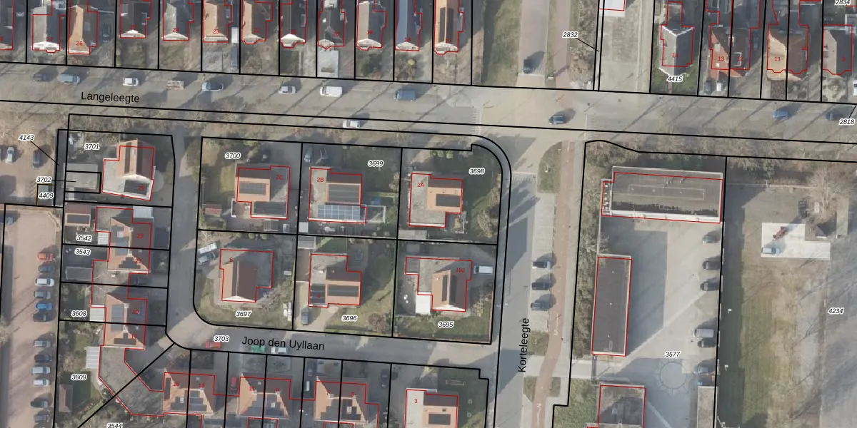 Het perceel waarop Langeleegte 2-A staat heeft een oppervlakte van 512 m². Dit is een groot perceel. De perceeloppervlakte wordt geregistreerd door het Kadaster. Gedetailleerde informatie over de maten van dit perceel kunt u vinden in het rapport Kadastrale kaart met maatvoering van Langeleegte 2-A.