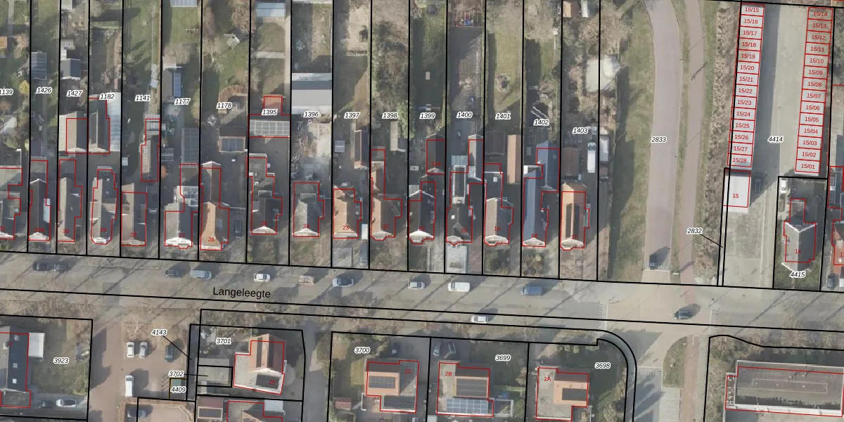 Langeleegte 21 is gelegen op kadastraal perceel VDM00C1399. Deze kadastrale aanduiding is uniek en wordt gebruikt door het Kadaster om eigendomsrechten en andere zakelijke rechten vast te leggen. Het perceel maakt onderdeel uit van de kadastrale gemeente Veendam.