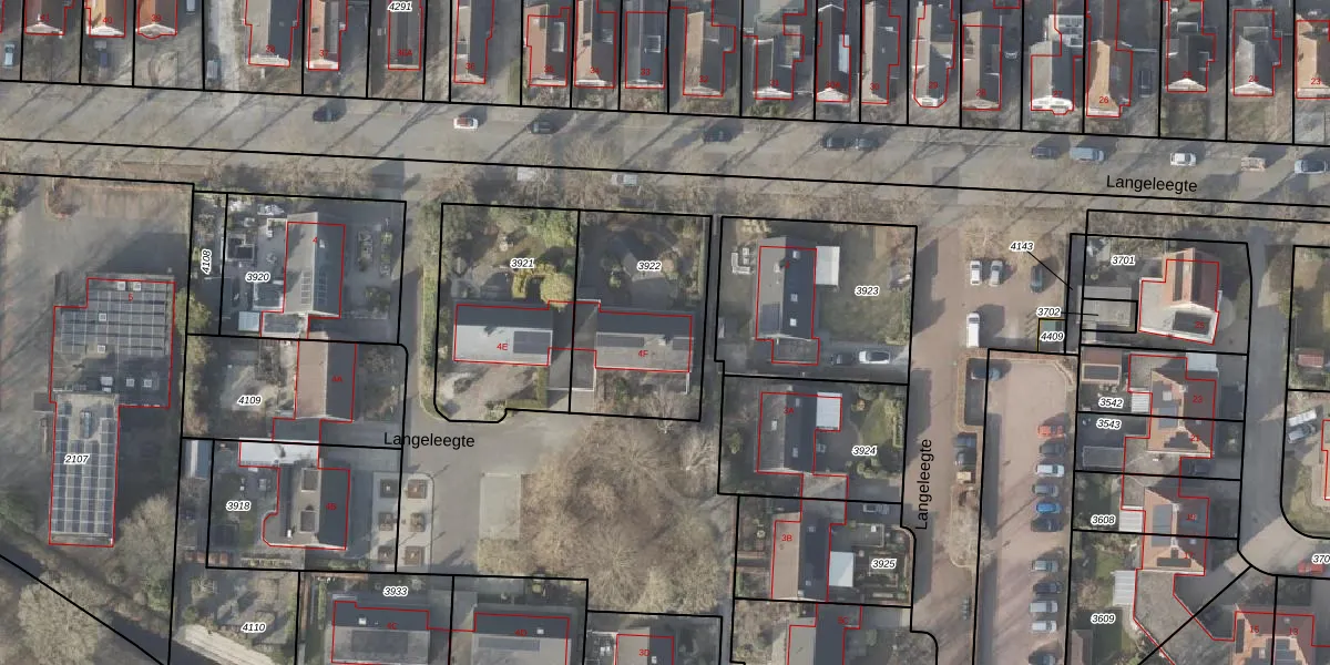 Het perceel waarop Langeleegte 4-F staat heeft een oppervlakte van 621 m². Dit is een groot perceel. De perceeloppervlakte wordt geregistreerd door het Kadaster. Gedetailleerde informatie over de maten van dit perceel kunt u vinden in het rapport Kadastrale kaart met maatvoering van Langeleegte 4-F.