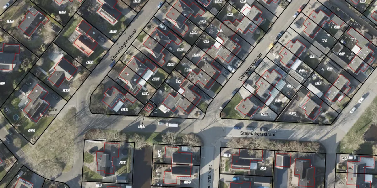 Gebruik de zoekbalk of klik op een perceel voor informatie over de adressen binnen dit perceel.