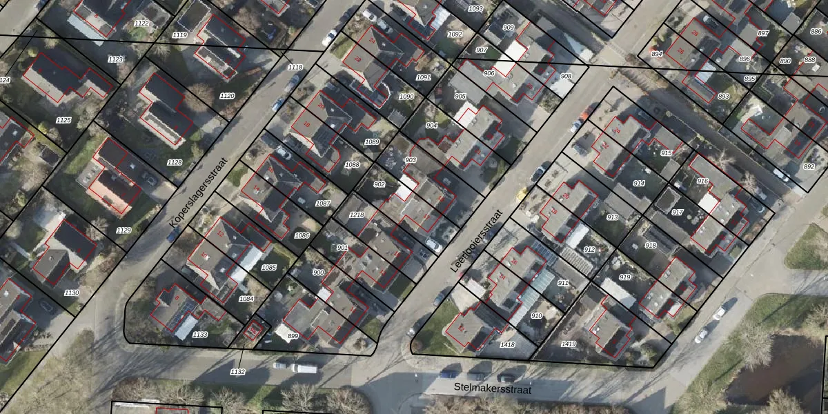 Gebruik de zoekbalk of klik op een perceel voor informatie over de adressen binnen dit perceel.