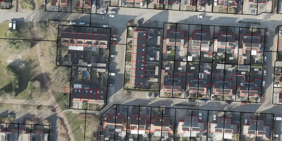 Het perceel waarop Leidekkersstraat 11 staat heeft een oppervlakte van 1142 m². Dit is een zeer groot perceel. De perceeloppervlakte wordt geregistreerd door het Kadaster. Gedetailleerde informatie over de maten van dit perceel kunt u vinden in het rapport Kadastrale kaart met maatvoering van Leidekkersstraat 11.
