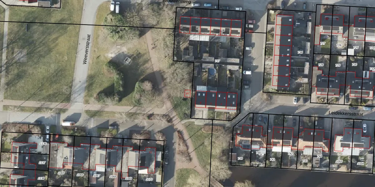 Het perceel waarop Leidekkersstraat 8-T staat heeft een oppervlakte van 3,3 ha. Dit is een zeer groot perceel. De perceeloppervlakte wordt geregistreerd door het Kadaster. Gedetailleerde informatie over de maten van dit perceel kunt u vinden in het rapport Kadastrale kaart met maatvoering van Leidekkersstraat 8-T.