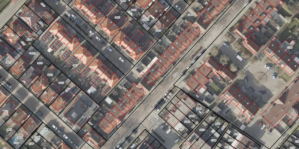 Het perceel waarop Leliestraat 44 staat heeft een oppervlakte van 4149 m². Dit is een zeer groot perceel. De perceeloppervlakte wordt geregistreerd door het Kadaster. Gedetailleerde informatie over de maten van dit perceel kunt u vinden in het rapport Kadastrale kaart met maatvoering van Leliestraat 44.