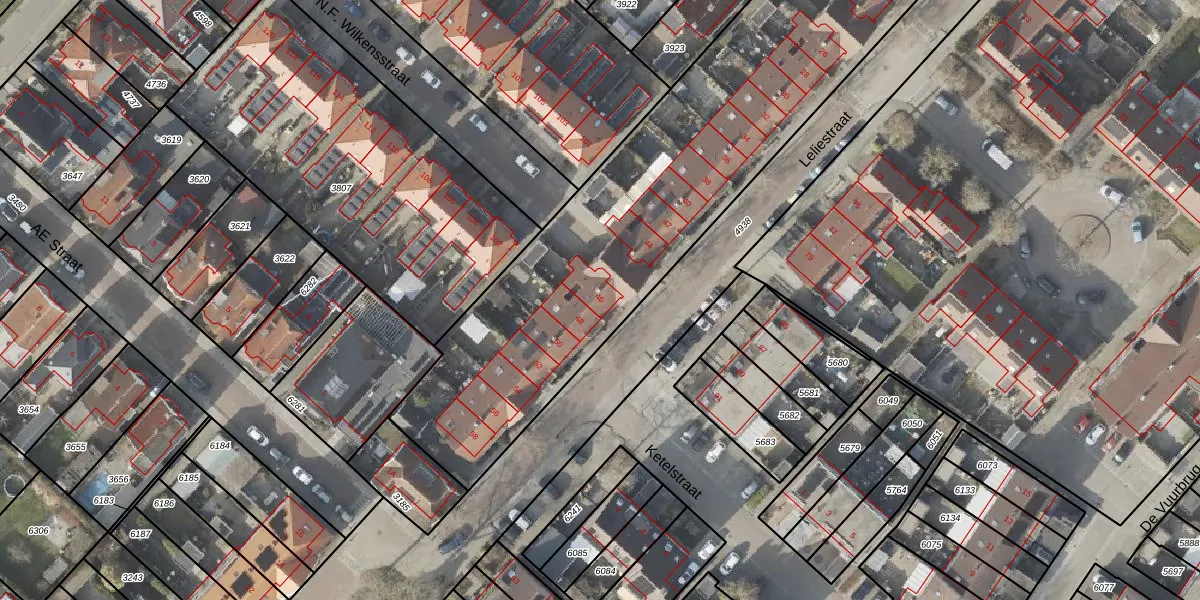 Het perceel waarop Leliestraat 48 staat heeft een oppervlakte van 4149 m². Dit is een zeer groot perceel. De perceeloppervlakte wordt geregistreerd door het Kadaster. Gedetailleerde informatie over de maten van dit perceel kunt u vinden in het rapport Kadastrale kaart met maatvoering van Leliestraat 48.