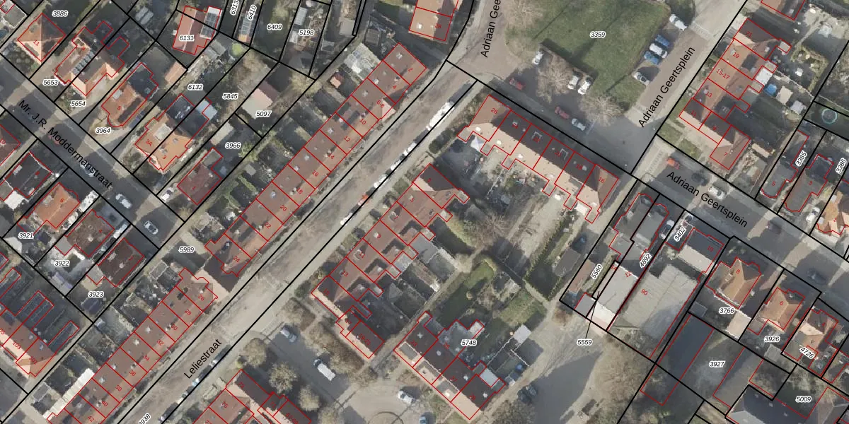 Het perceel waarop Leliestraat 5 staat heeft een oppervlakte van 8171 m². Dit is een zeer groot perceel. De perceeloppervlakte wordt geregistreerd door het Kadaster. Gedetailleerde informatie over de maten van dit perceel kunt u vinden in het rapport Kadastrale kaart met maatvoering van Leliestraat 5.
