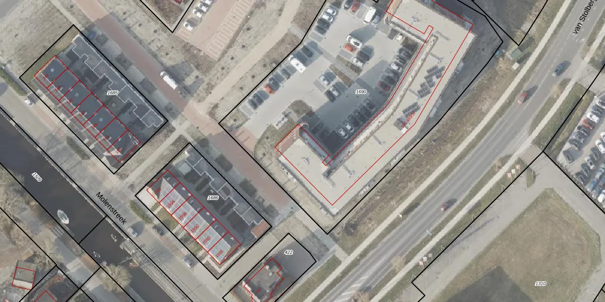 Het perceel waarop het adres ligt is VDM00-M-1690. De afkorting 'VDM00' staat voor kadastrale gemeente Veendam. De gemiddelde perceelgrootte in Veendam is 4969,46 m². Dit perceel is kleiner: de perceeloppervlakte bedraagt 4196 m². Het grootste perceel in de kadastrale gemeente is 1,64 km². Het kleinste perceel heeft een oppervlakte van 0 m². Op het perceel zijn 50 adressen aanwezig. In de Basisregistratie Kadaster (BRK) werden de grenzen van het perceel geregistreerd op 03-03-2025.