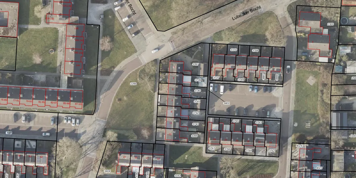 Het perceel waarop Lubecker Bocht 5 staat heeft een oppervlakte van 172 m². Dit is een middelgroot perceel. De perceeloppervlakte wordt geregistreerd door het Kadaster. Gedetailleerde informatie over de maten van dit perceel kunt u vinden in het rapport Kadastrale kaart met maatvoering van Lubecker Bocht 5.