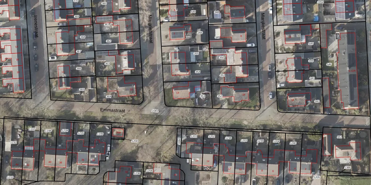 Het perceel waarop Margrietstraat 13 staat heeft een oppervlakte van 360 m². Dit is een groot perceel. De perceeloppervlakte wordt geregistreerd door het Kadaster. Gedetailleerde informatie over de maten van dit perceel kunt u vinden in het rapport Kadastrale kaart met maatvoering van Margrietstraat 13.