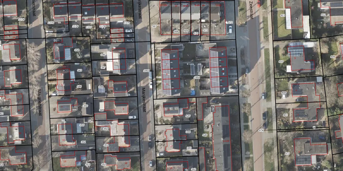 Het perceel waarop Marijkestraat 11 staat heeft een oppervlakte van 1578 m². Dit is een zeer groot perceel. De perceeloppervlakte wordt geregistreerd door het Kadaster. Gedetailleerde informatie over de maten van dit perceel kunt u vinden in het rapport Kadastrale kaart met maatvoering van Marijkestraat 11.