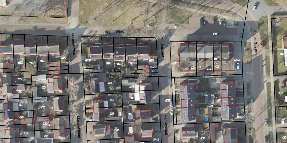Het perceel waarop Marijkestraat 2-B staat heeft een oppervlakte van 242 m². Dit is een middelgroot perceel. De perceeloppervlakte wordt geregistreerd door het Kadaster. Gedetailleerde informatie over de maten van dit perceel kunt u vinden in het rapport Kadastrale kaart met maatvoering van Marijkestraat 2-B.