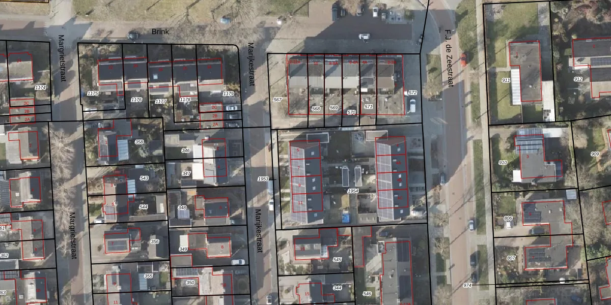 Het perceel waarop Marijkestraat 5 staat heeft een oppervlakte van 1578 m². Dit is een zeer groot perceel. De perceeloppervlakte wordt geregistreerd door het Kadaster. Gedetailleerde informatie over de maten van dit perceel kunt u vinden in het rapport Kadastrale kaart met maatvoering van Marijkestraat 5.