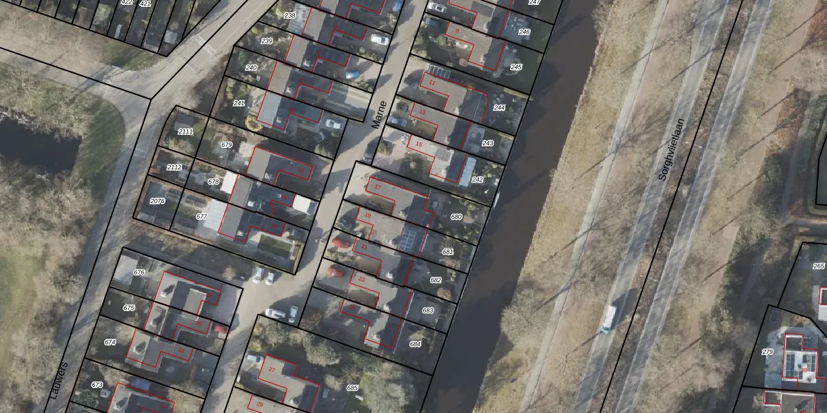 Het perceel waarop Marne 17 staat heeft een oppervlakte van 339 m². Dit is een groot perceel. De perceeloppervlakte wordt geregistreerd door het Kadaster. Gedetailleerde informatie over de maten van dit perceel kunt u vinden in het rapport Kadastrale kaart met maatvoering van Marne 17.