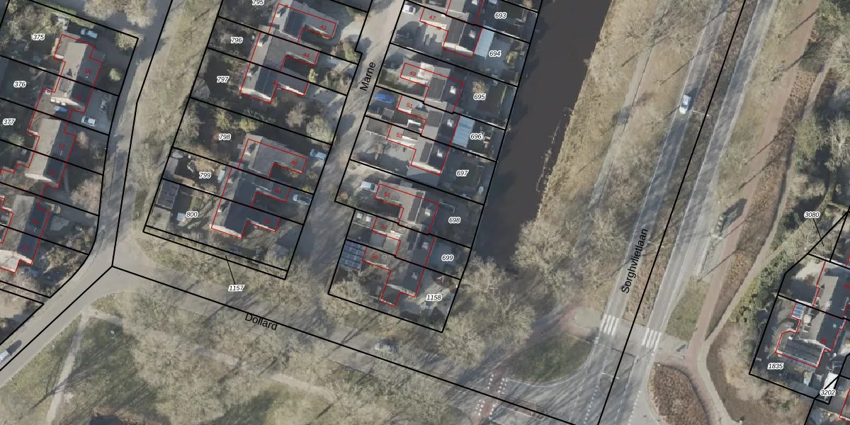 Het perceel waarop Marne 55 staat heeft een oppervlakte van 356 m². Dit is een groot perceel. De perceeloppervlakte wordt geregistreerd door het Kadaster. Gedetailleerde informatie over de maten van dit perceel kunt u vinden in het rapport Kadastrale kaart met maatvoering van Marne 55.