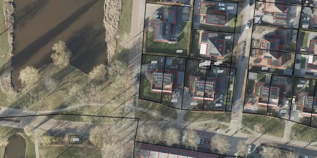 Het perceel waarop Meezenbroekstraat 39 staat heeft een oppervlakte van 415 m². Dit is een groot perceel. De perceeloppervlakte wordt geregistreerd door het Kadaster. Gedetailleerde informatie over de maten van dit perceel kunt u vinden in het rapport Kadastrale kaart met maatvoering van Meezenbroekstraat 39.