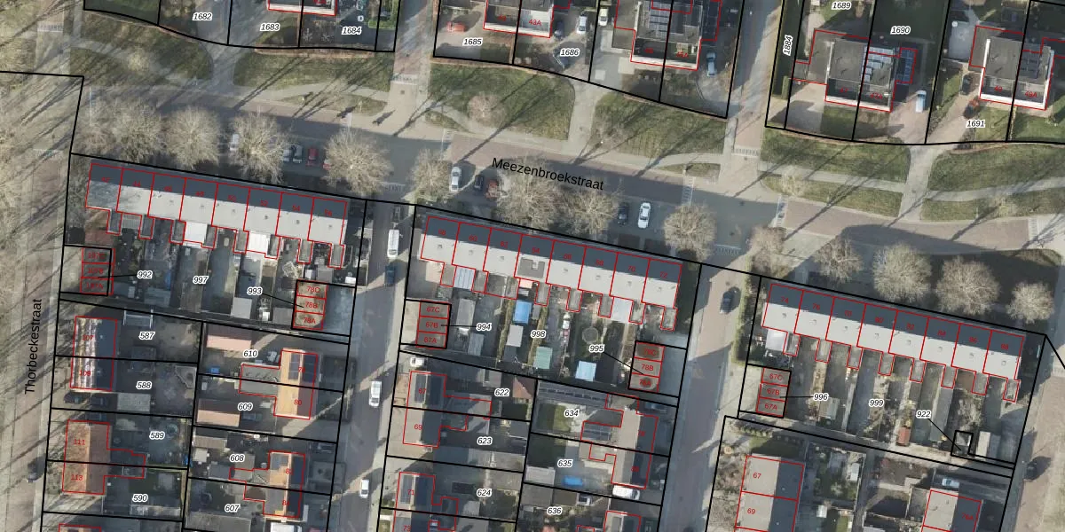 Het perceel waarop Meezenbroekstraat 64 staat heeft een oppervlakte van 1310 m². Dit is een zeer groot perceel. De perceeloppervlakte wordt geregistreerd door het Kadaster. Gedetailleerde informatie over de maten van dit perceel kunt u vinden in het rapport Kadastrale kaart met maatvoering van Meezenbroekstraat 64.