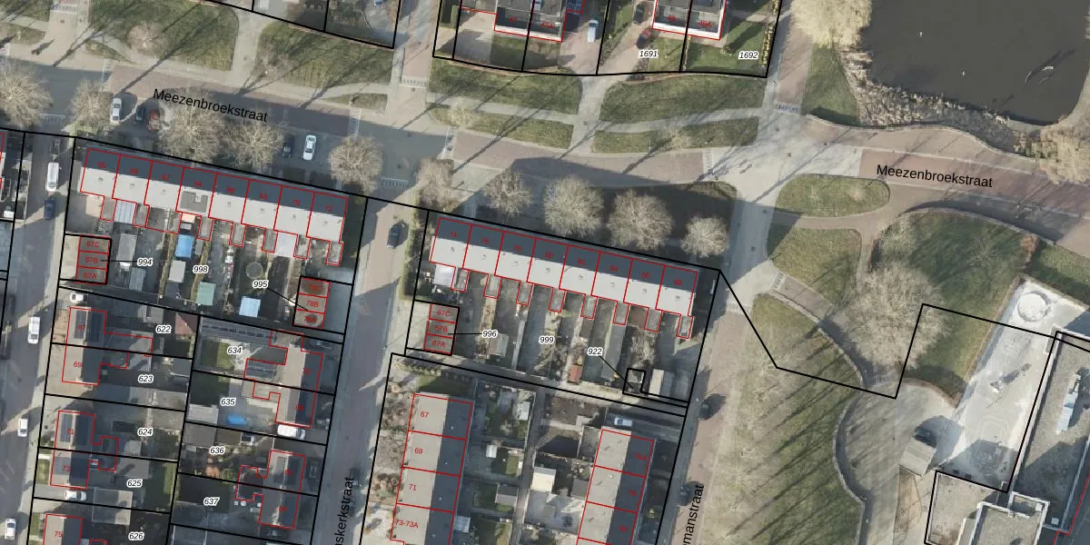 Het perceel waarop Meezenbroekstraat 80 staat heeft een oppervlakte van 1380 m². Dit is een zeer groot perceel. De perceeloppervlakte wordt geregistreerd door het Kadaster. Gedetailleerde informatie over de maten van dit perceel kunt u vinden in het rapport Kadastrale kaart met maatvoering van Meezenbroekstraat 80.