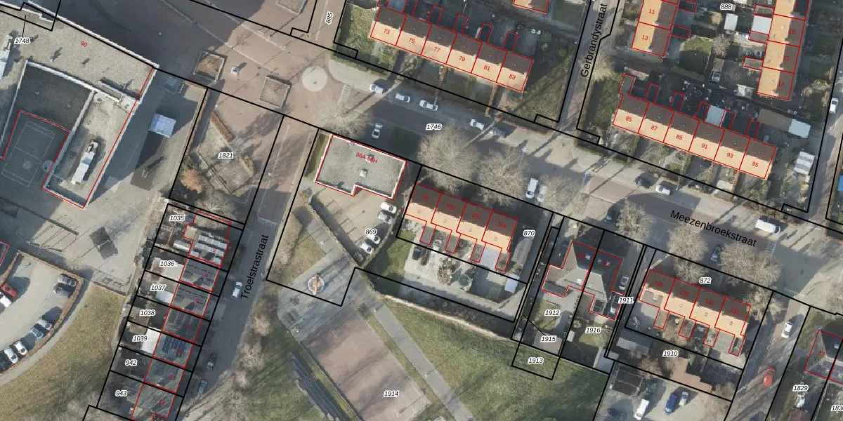 Het perceel waarop Meezenbroekstraat 98 staat heeft een oppervlakte van 597 m². Dit is een groot perceel. De perceeloppervlakte wordt geregistreerd door het Kadaster. Gedetailleerde informatie over de maten van dit perceel kunt u vinden in het rapport Kadastrale kaart met maatvoering van Meezenbroekstraat 98.