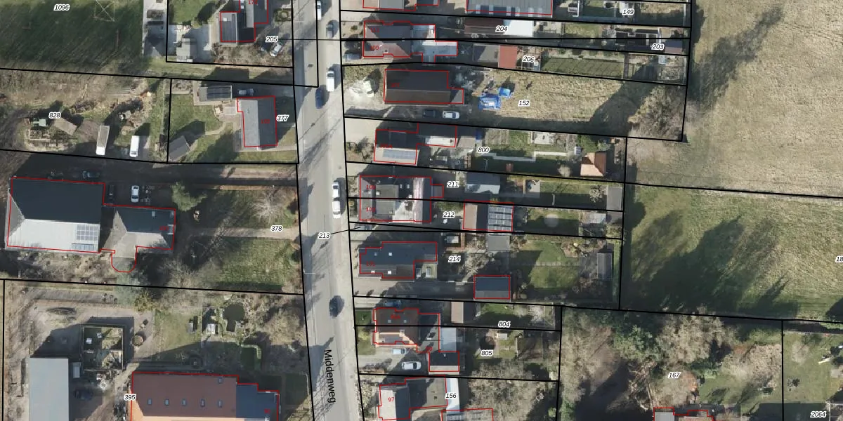 Middenweg 103 is gelegen op kadastraal perceel VDM00O212. Deze kadastrale aanduiding is uniek en wordt gebruikt door het Kadaster om eigendomsrechten en andere zakelijke rechten vast te leggen. Het perceel maakt onderdeel uit van de kadastrale gemeente Veendam.