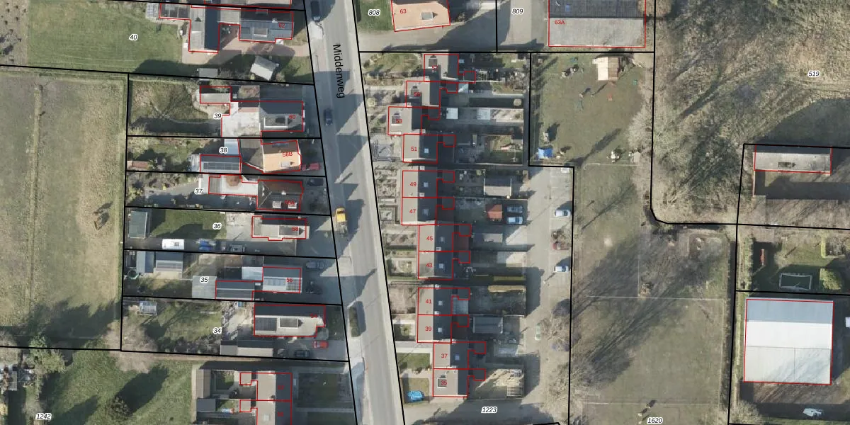Middenweg 47 is gelegen op kadastraal perceel VDM00O1223. Deze kadastrale aanduiding is uniek en wordt gebruikt door het Kadaster om eigendomsrechten en andere zakelijke rechten vast te leggen. Het perceel maakt onderdeel uit van de kadastrale gemeente Veendam.