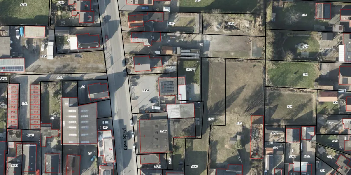 Het perceel waarop Middenweg 7 staat heeft een oppervlakte van 832 m². Dit is een groot perceel. De perceeloppervlakte wordt geregistreerd door het Kadaster. Gedetailleerde informatie over de maten van dit perceel kunt u vinden in het rapport Kadastrale kaart met maatvoering van Middenweg 7.
