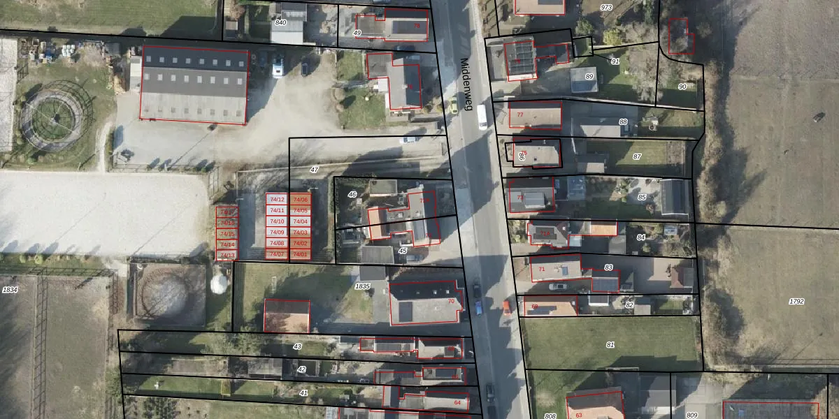 Middenweg 72-A is gelegen op kadastraal perceel VDM00O46. Deze kadastrale aanduiding is uniek en wordt gebruikt door het Kadaster om eigendomsrechten en andere zakelijke rechten vast te leggen. Het perceel maakt onderdeel uit van de kadastrale gemeente Veendam.