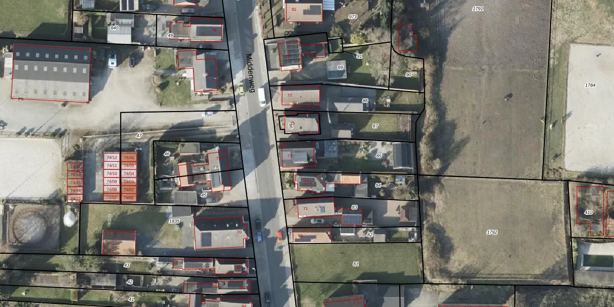 Middenweg 73 is gelegen op kadastraal perceel VDM00O85. Deze kadastrale aanduiding is uniek en wordt gebruikt door het Kadaster om eigendomsrechten en andere zakelijke rechten vast te leggen. Het perceel maakt onderdeel uit van de kadastrale gemeente Veendam.
