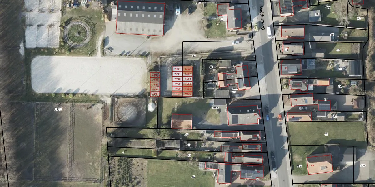Middenweg 74-01 is gelegen op kadastraal perceel VDM00O47. Deze kadastrale aanduiding is uniek en wordt gebruikt door het Kadaster om eigendomsrechten en andere zakelijke rechten vast te leggen. Het perceel maakt onderdeel uit van de kadastrale gemeente Veendam.