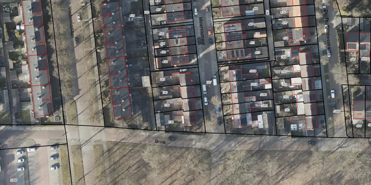 Minervastraat 108 is gelegen op kadastraal perceel VDM00L740. Deze kadastrale aanduiding is uniek en wordt gebruikt door het Kadaster om eigendomsrechten en andere zakelijke rechten vast te leggen. Het perceel maakt onderdeel uit van de kadastrale gemeente Veendam.