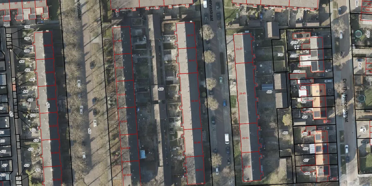 Minervastraat 50 is gelegen op kadastraal perceel VDM00L446. Deze kadastrale aanduiding is uniek en wordt gebruikt door het Kadaster om eigendomsrechten en andere zakelijke rechten vast te leggen. Het perceel maakt onderdeel uit van de kadastrale gemeente Veendam.