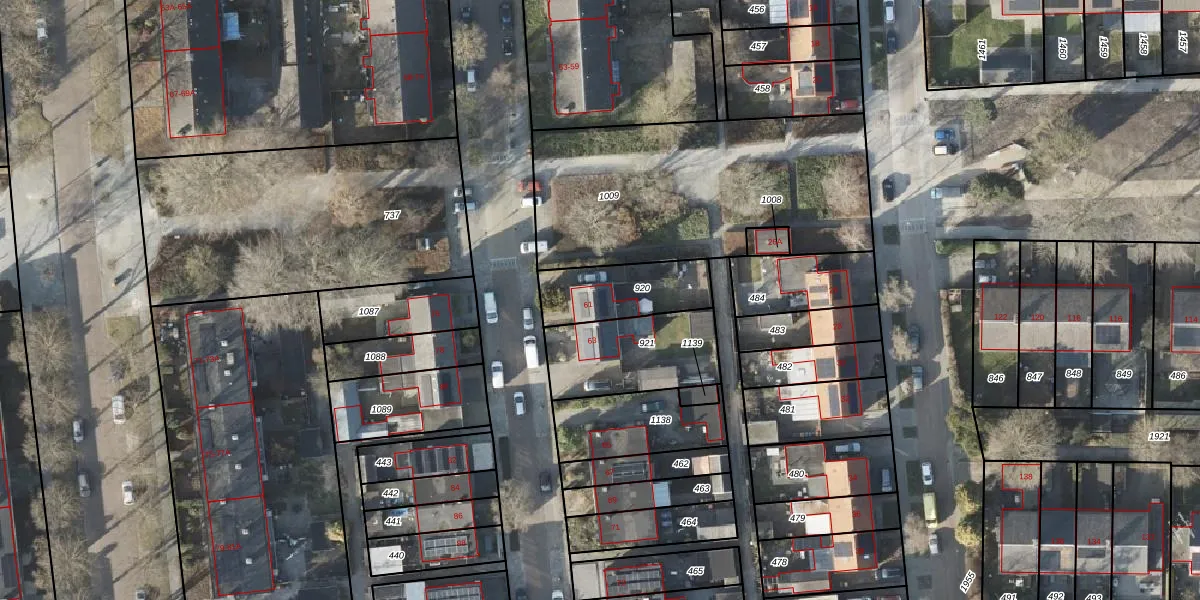 Gebruik de zoekbalk of klik op een perceel voor informatie over de adressen binnen dit perceel.