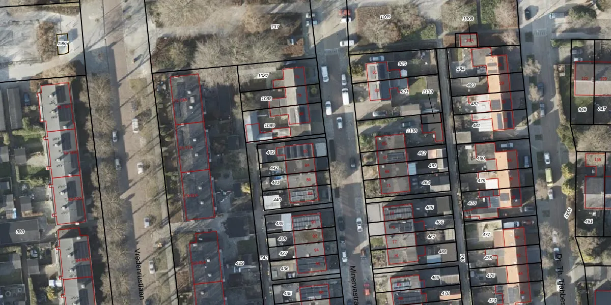 Minervastraat 82 is gelegen op kadastraal perceel VDM00L443. Deze kadastrale aanduiding is uniek en wordt gebruikt door het Kadaster om eigendomsrechten en andere zakelijke rechten vast te leggen. Het perceel maakt onderdeel uit van de kadastrale gemeente Veendam.