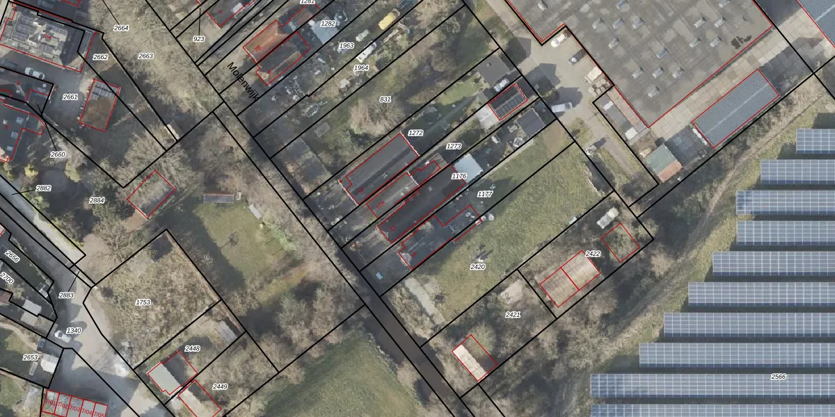 Het perceel waarop Molenwijk 13 staat heeft een oppervlakte van 415 m². Dit is een groot perceel. De perceeloppervlakte wordt geregistreerd door het Kadaster. Gedetailleerde informatie over de maten van dit perceel kunt u vinden in het rapport Kadastrale kaart met maatvoering van Molenwijk 13.