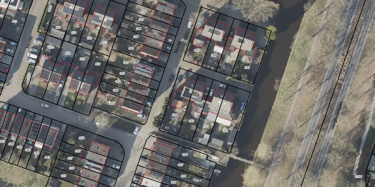 Het perceel waarop Munte 53 staat heeft een oppervlakte van 356 m². Dit is een groot perceel. De perceeloppervlakte wordt geregistreerd door het Kadaster. Gedetailleerde informatie over de maten van dit perceel kunt u vinden in het rapport Kadastrale kaart met maatvoering van Munte 53.