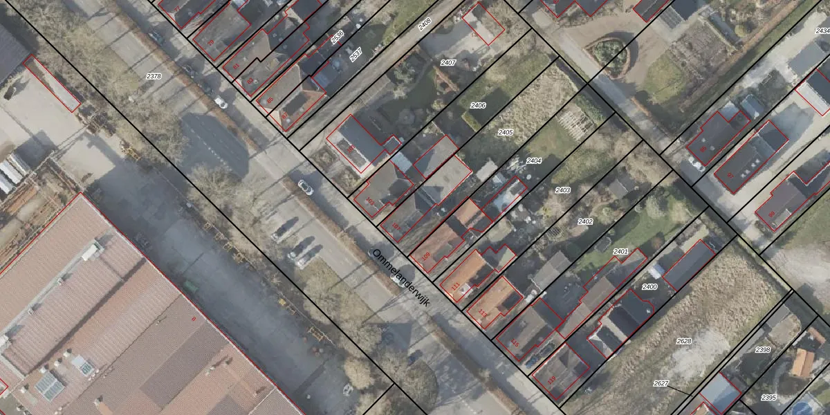 Ommelanderwijk 107 is gelegen op kadastraal perceel VDM00G2405. Deze kadastrale aanduiding is uniek en wordt gebruikt door het Kadaster om eigendomsrechten en andere zakelijke rechten vast te leggen. Het perceel maakt onderdeel uit van de kadastrale gemeente Veendam.